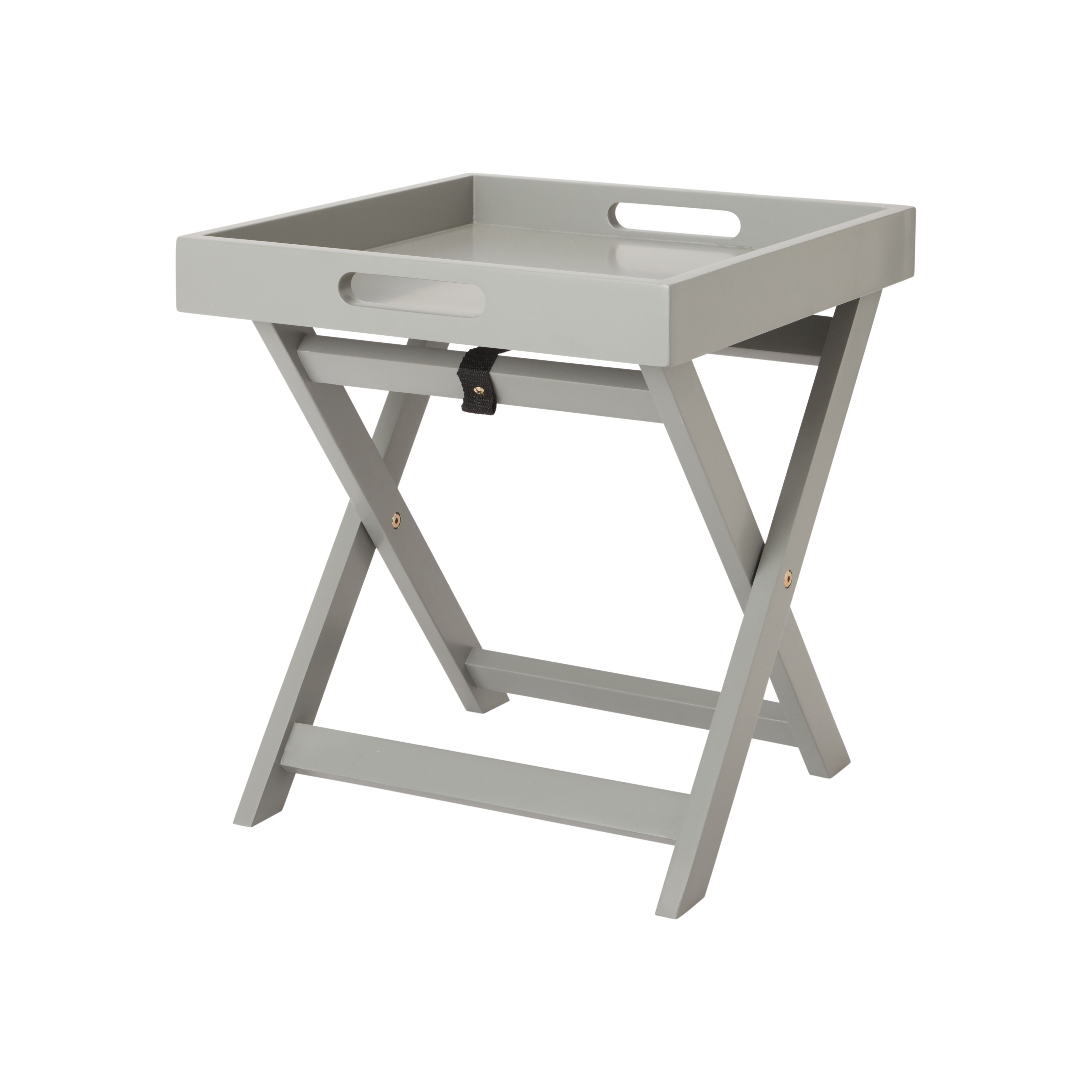 Product Item: Gray folding outlet tray table