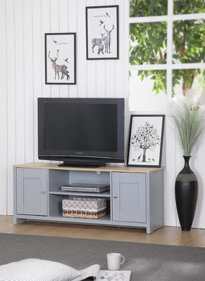 Grey and oak tv outlet stand