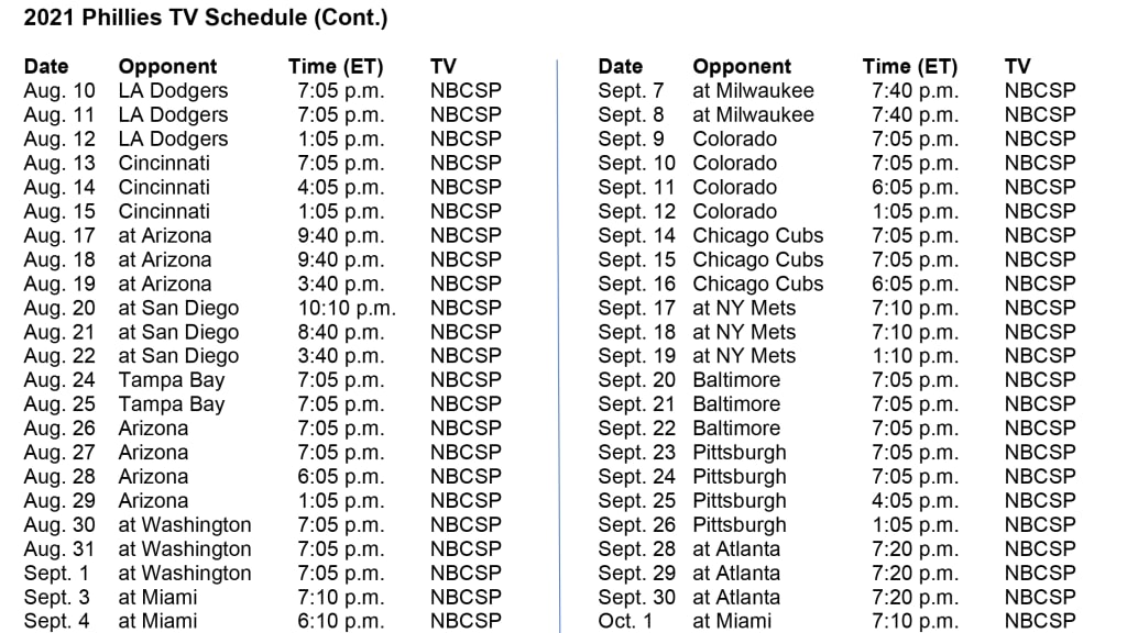 Product Item: Phillies tv outlet schedule