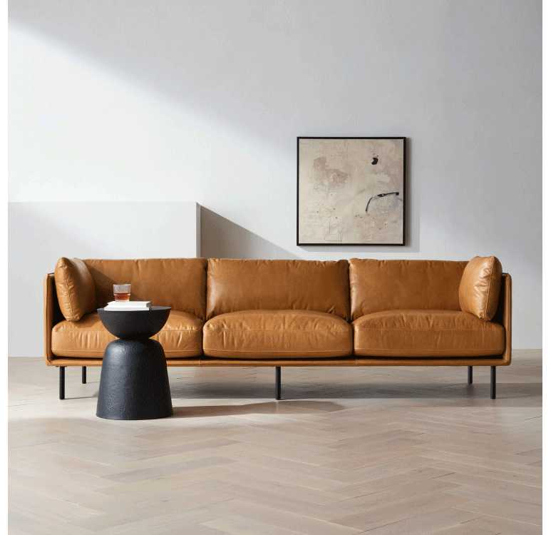 Product Item: Slim leather outlet sofa