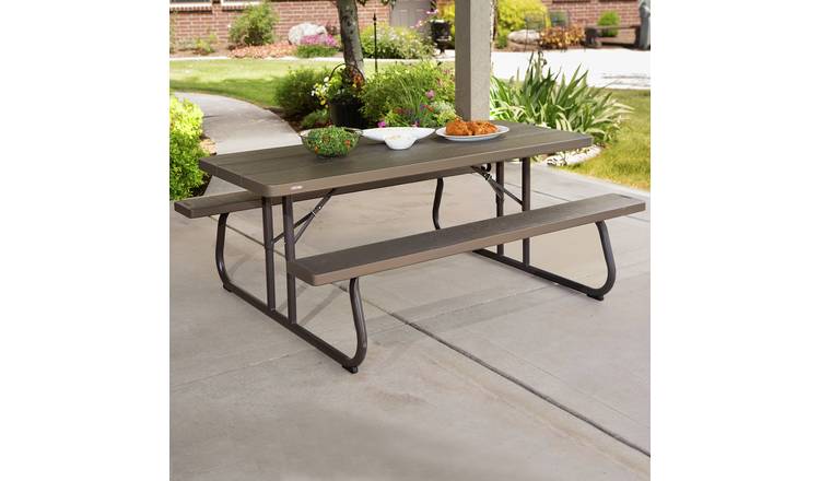 Product Item: Brown plastic outlet picnic table