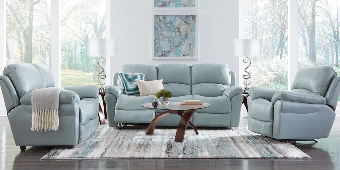 Aqua leather outlet reclining sofa